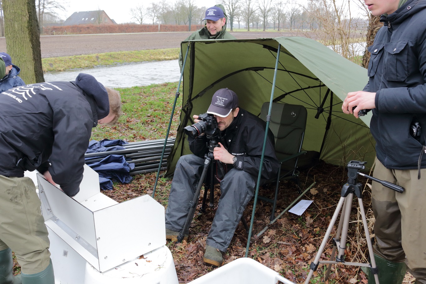 Het uitzetten trekt altijd veel belangstelling van vissers.