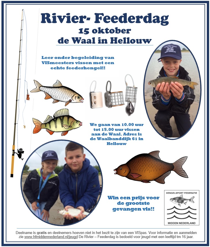 Op zondag 15 oktober organiseert de Hengelsport Federatie Midden Nederland een gratis visdag voor de jeugd aan de rivier. Dit keer gaan we vissen aan de Waal bij Hellouw. Ben jij jonger dan 18 jaar? Kom dan op deze dag kennis maken met de riviervisserij. Er is zelfs een mooie prijs te winnen!