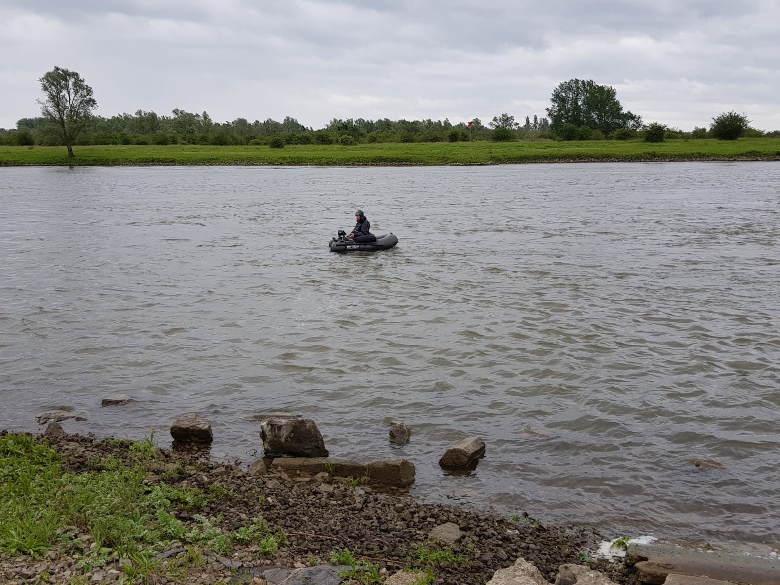 Op de IJsseloever stonden opstellingen, waarbij onderwaterdobbers en boeien afgespannen worden, om op de juiste positie te blijven liggen. Bij een aanbeet knapt een breeklijn en kan de vis gedrild worden. Ook spinnen op meerval en vissen vanuit een bellyboat werden gedemonstreerd. Het werd nog even spannend toen de bellyboat visser een groot symbool zag stijgen op de dieptemeter en ook kortstondig “iets” voelde knabbelen aan het haakaas, maar helaas lukte het door de harde wind niet om op de stek te blijven liggen en was de kans op deze meervalvangst verkeken.