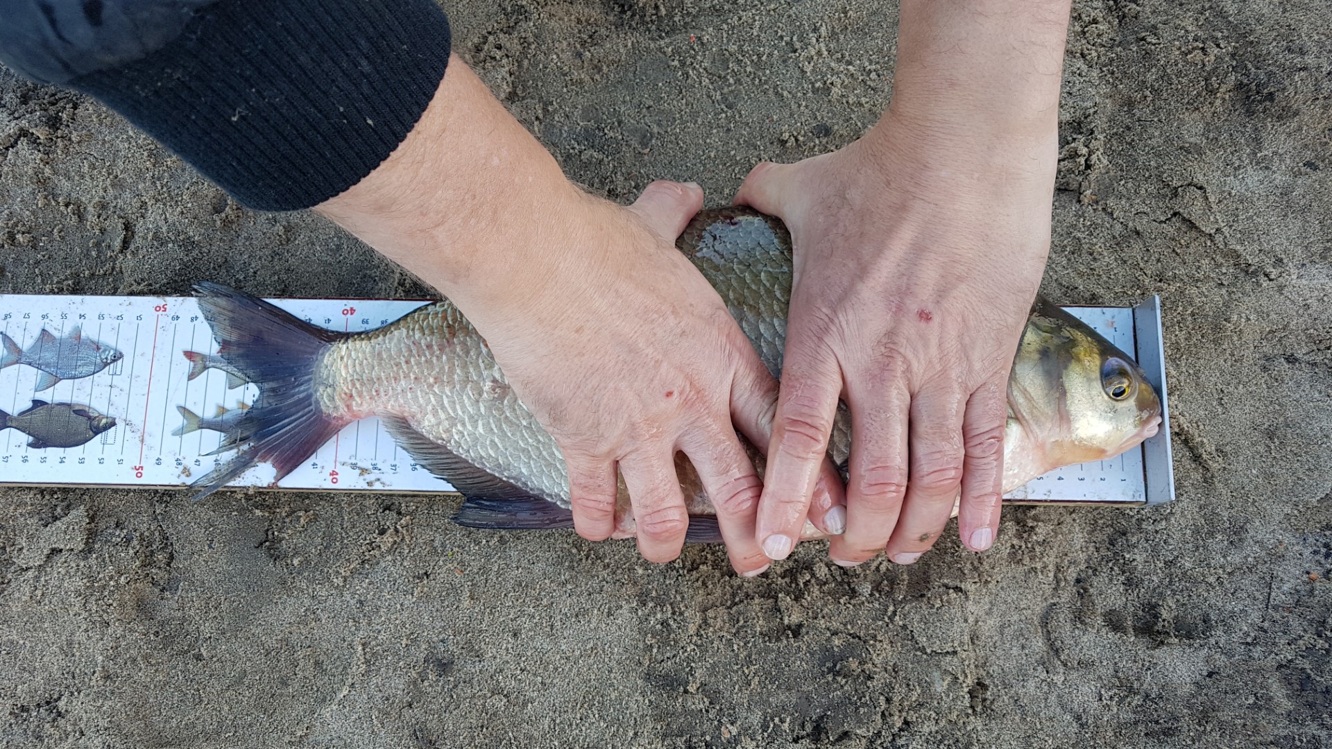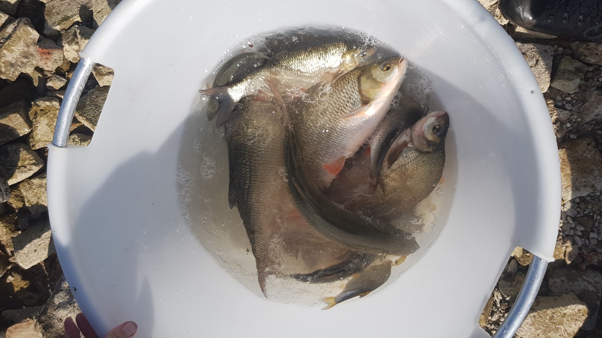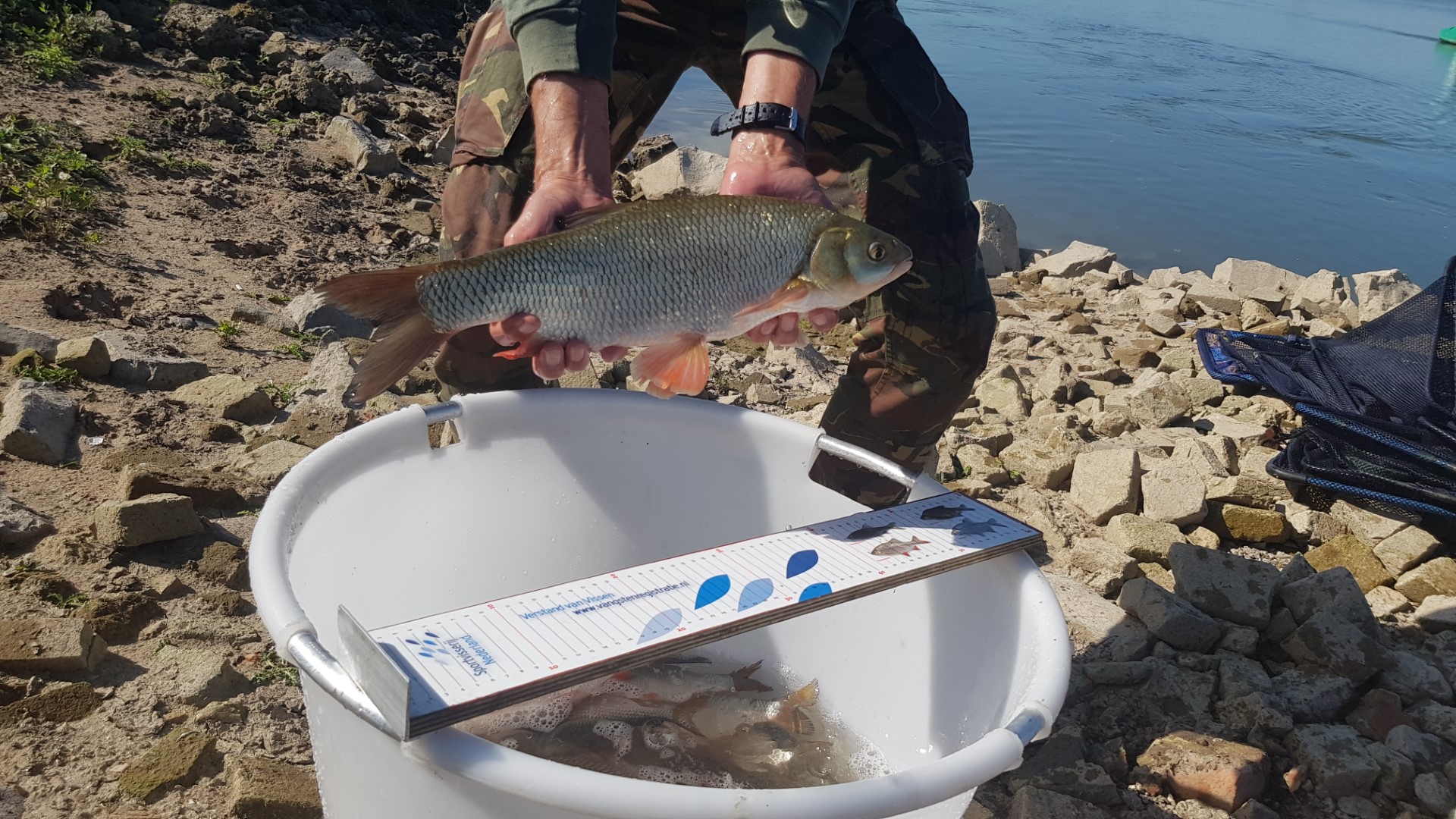 De hoofdmoot van de vangst bestond uit windes. Deze werden gevangen in allerlei formaten van rond de 25cm tot rond de 50 cm. Bijzondere vangsten waren de barbeel, alver en donaubrasem. De barbeel wordt met het onderzoek wel gevangen, maar dan zijn het kleine exemplaren. De grotere vissen worden met de hengel nog niet super veel gevangen. De donaubrasem is een nieuwkomer, de laatste tijd is deze met het onderzoek wel aangetroffen maar vingen we hem nog niet eerder aan de hengel. Voor een donaubrasem is een exemplaar van 35cm een behoorlijk grote vis!