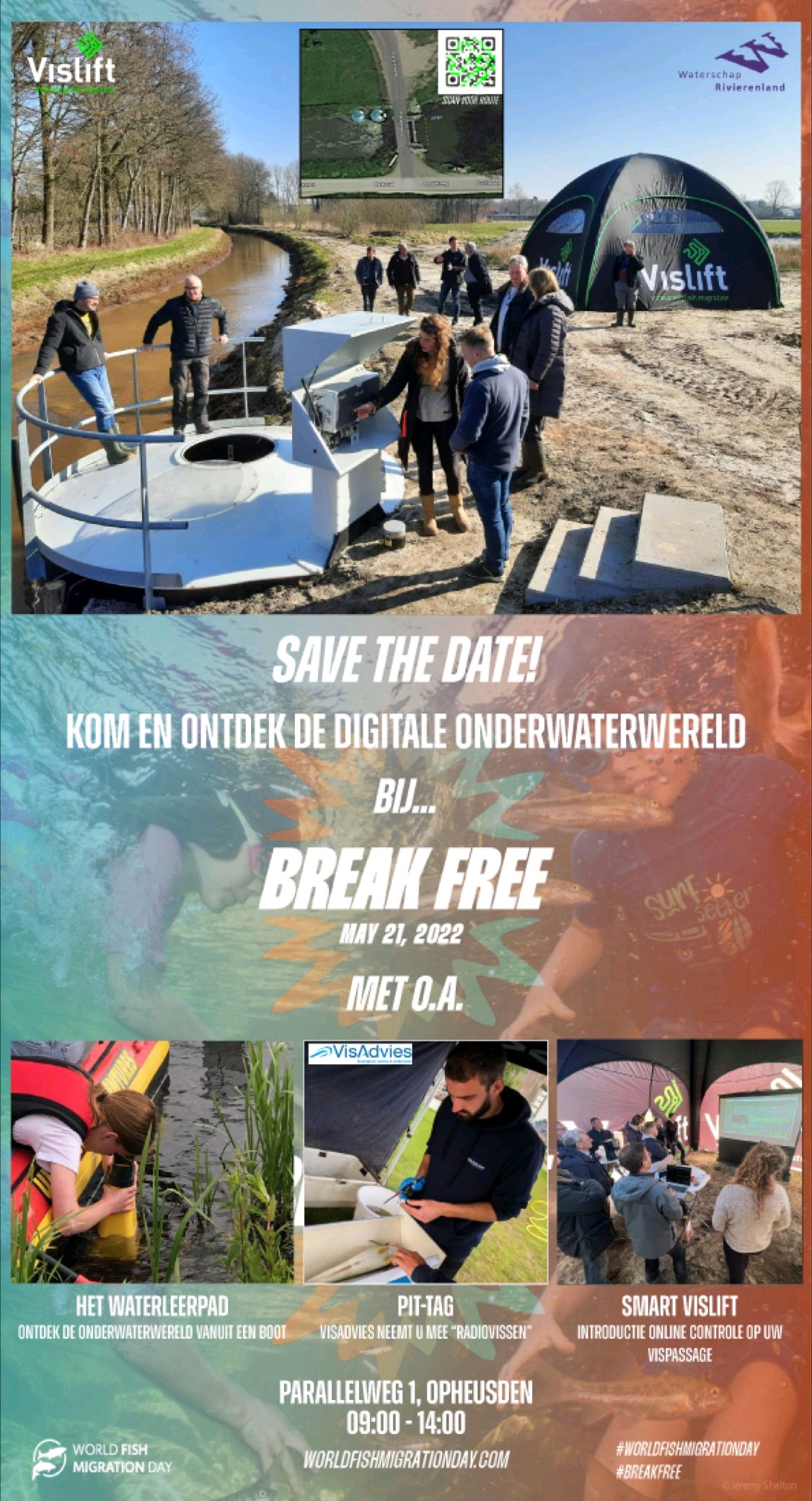 De World Fish Migration Foundation uit Groningen coördineert die dag de activiteiten voor álle deelnemende landen. Waar bij de laatste editie van de World Fish Migration Day veel evenementen online plaatsvonden als gevolg van corona, is er dit jaar weer volop ruimte voor fysieke activiteiten. Ook in Nederland zijn er tal van events.