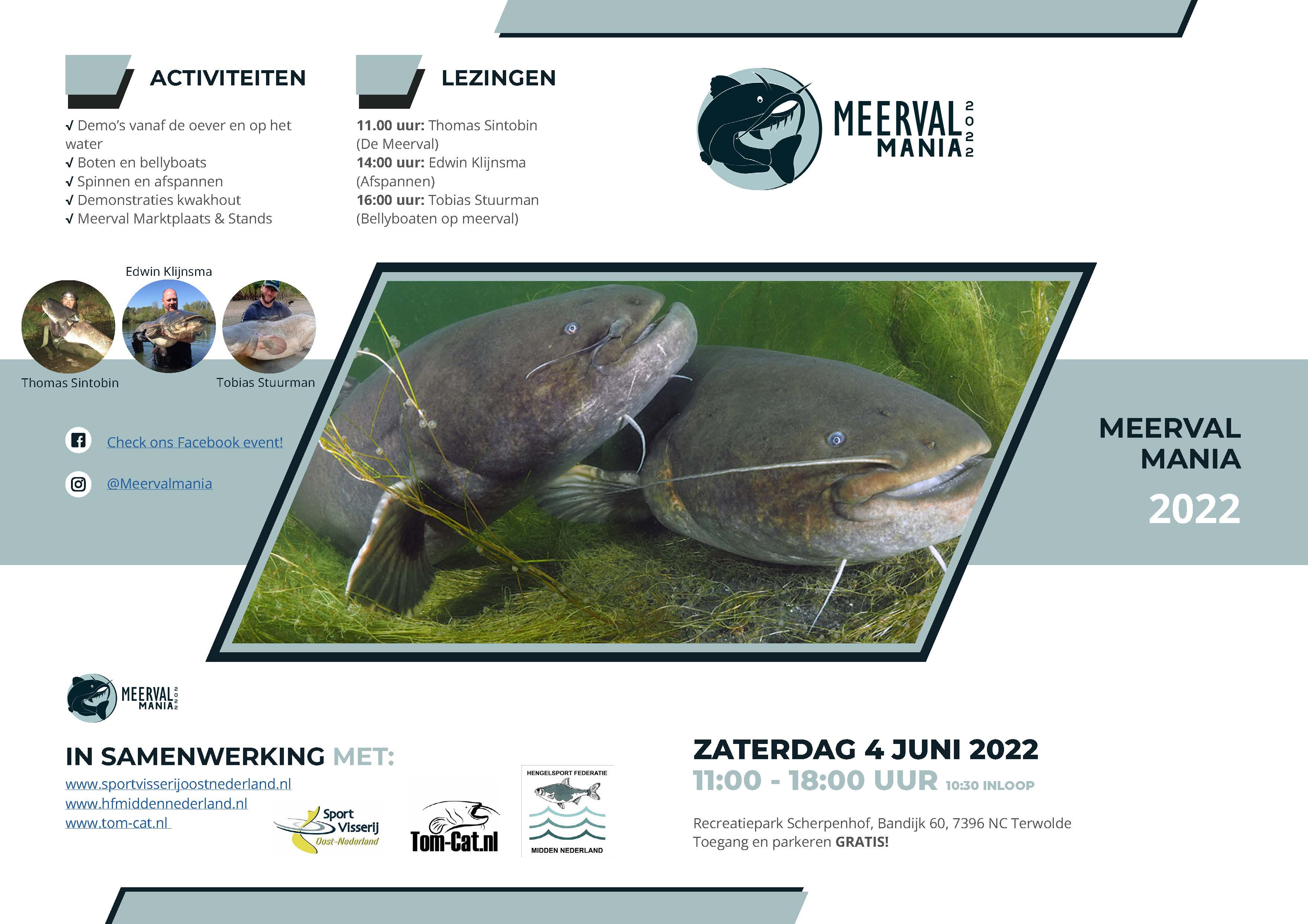 Achter de schermen is hard gewerkt aan een te gek programma op Meerval Mania! We hebben drie zeer interessante sprekers bereid gevonden om je mee te nemen in hun wereld binnen de meervalvisserij. Zaterdag 4 juni wordt een spectaculaire dag om nooit meer te vergeten. Wees erbij op recreatiepark De Scherpenhof in Terwolde. Toegang en parkeren is gratis!