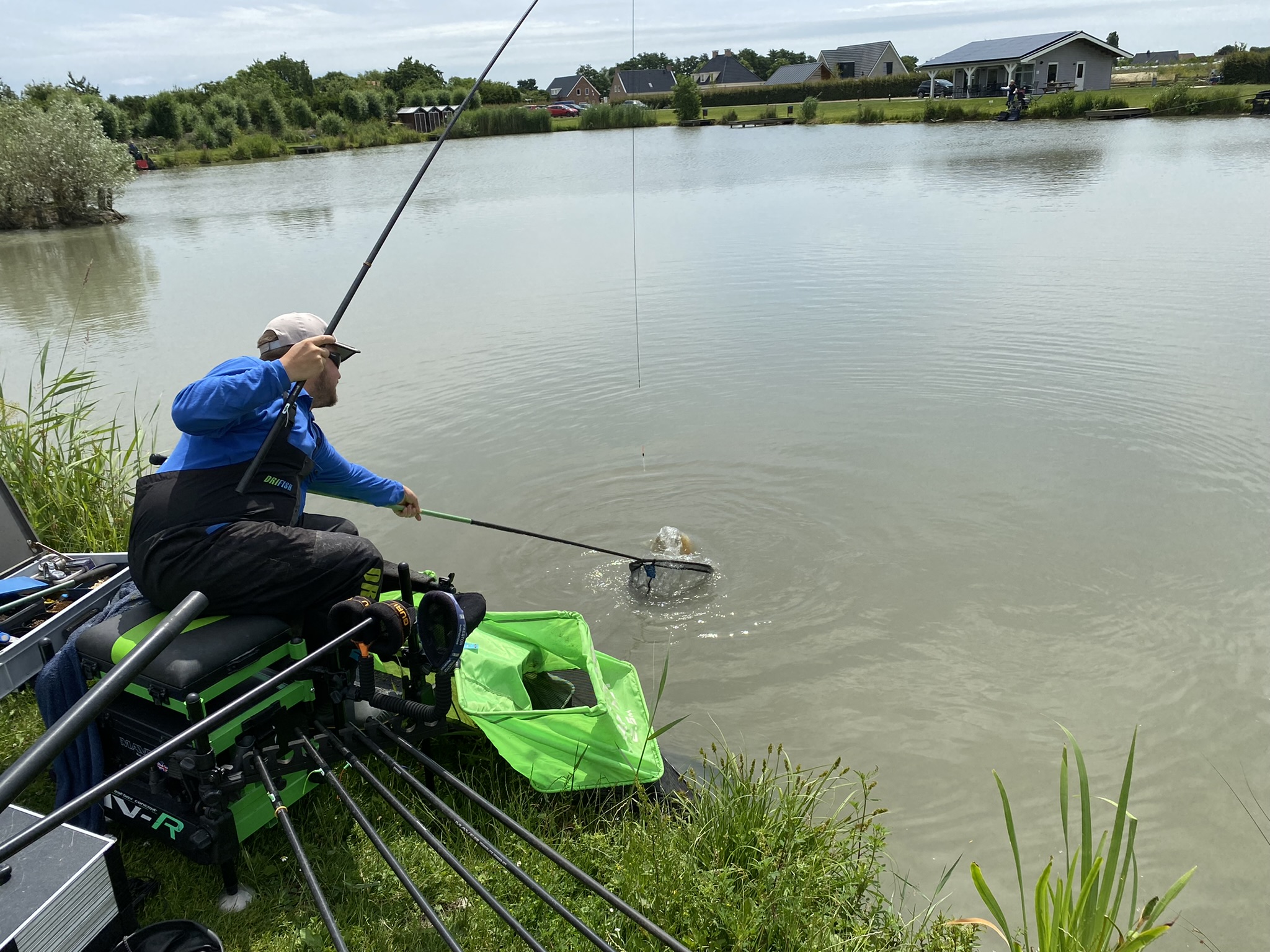 Doordat er tien deelnemers mee deden aan de wedstrijd, konden de vissers wat ruimer opgesteld worden rond de vijver. Na de loting om 8:30 kon er gestart worden om 10:00. Helaas waren de weergoden ons niet gunstig gezind. In de eerste helft van de wedstrijd was het wisselvallig met regenbuien en wind. In de tweede helft van de wedstrijd kwam de zon door en draaide de wind. Een aantal deelnemers begonnen goed te vangen door actiever te vissen met de pellet waggler en de jigger. Desalniettemin werden er met het margin vissen wat grotere vissen gevangen waardoor het spannend was wie de winnaar zou zijn van de selectie wedstrijd. Om 15:00 was het eindsignaal en kon er gewogen worden.