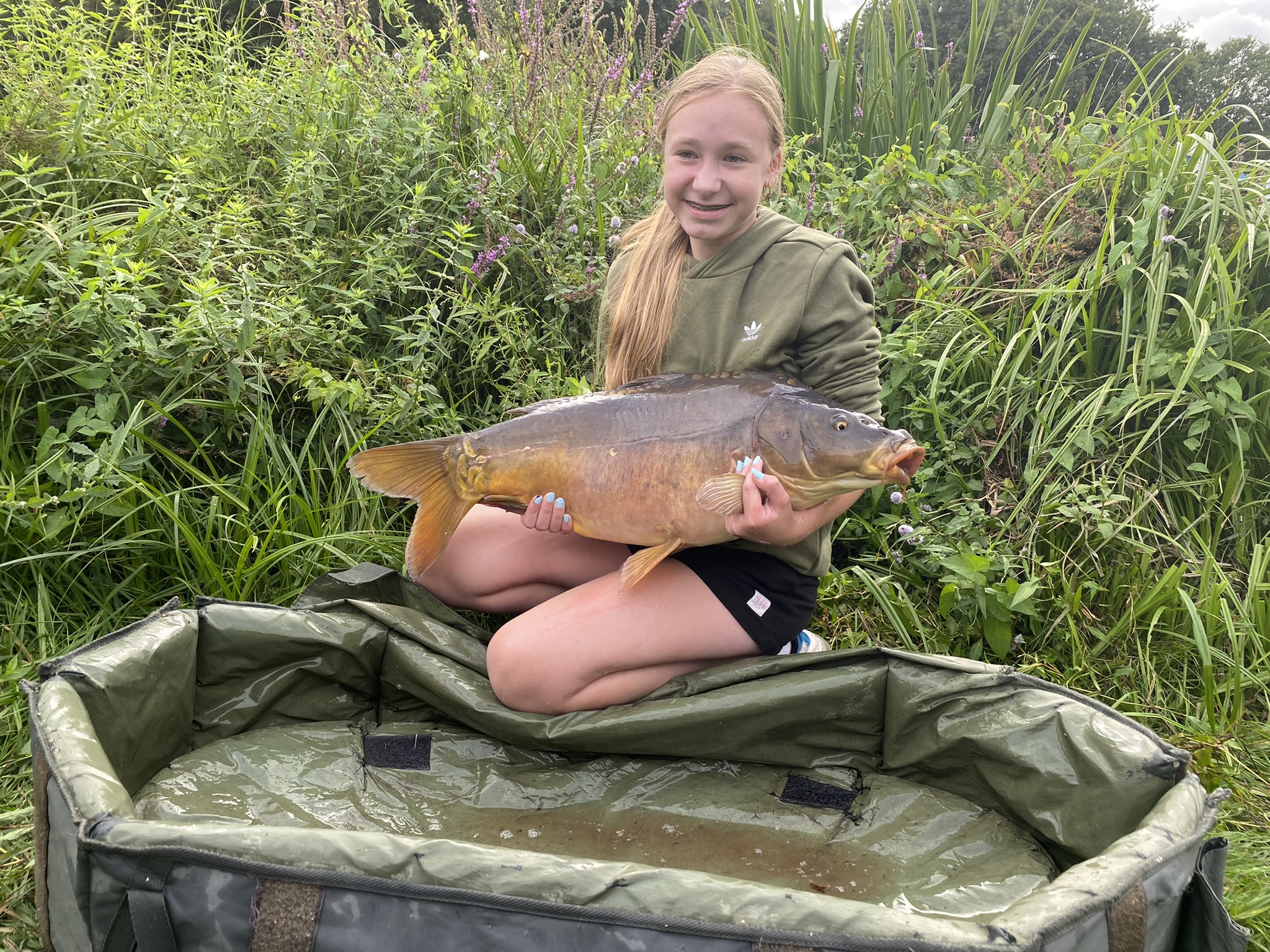 Na de loting van de stekken op vrijdagmiddag klonk het startsignaal om 17.00 uur. Vroeg in de avond werd de eerste karper gemeld. Deze was geland door Sylvie en haar vader Pieter, die in 2019 al furore hadden gemaakt door glorieus de wedstrijd te winnen. De prachtige karper werd vakkundig door Sylvie gepresenteerd voor de foto. In de loop van de nacht en ochtend wisten Sylvie en haar vader nog 3 karpers te verschalken.