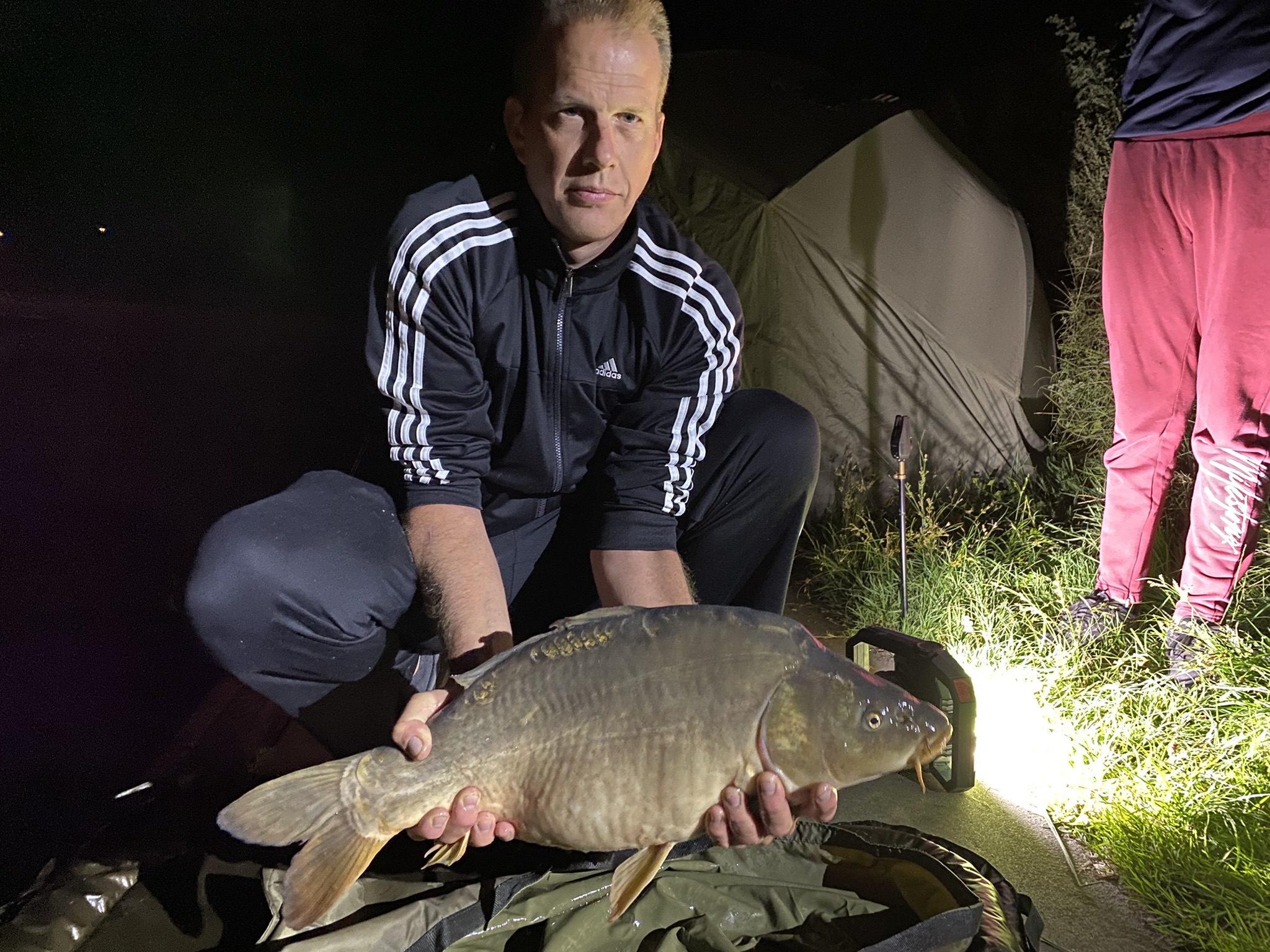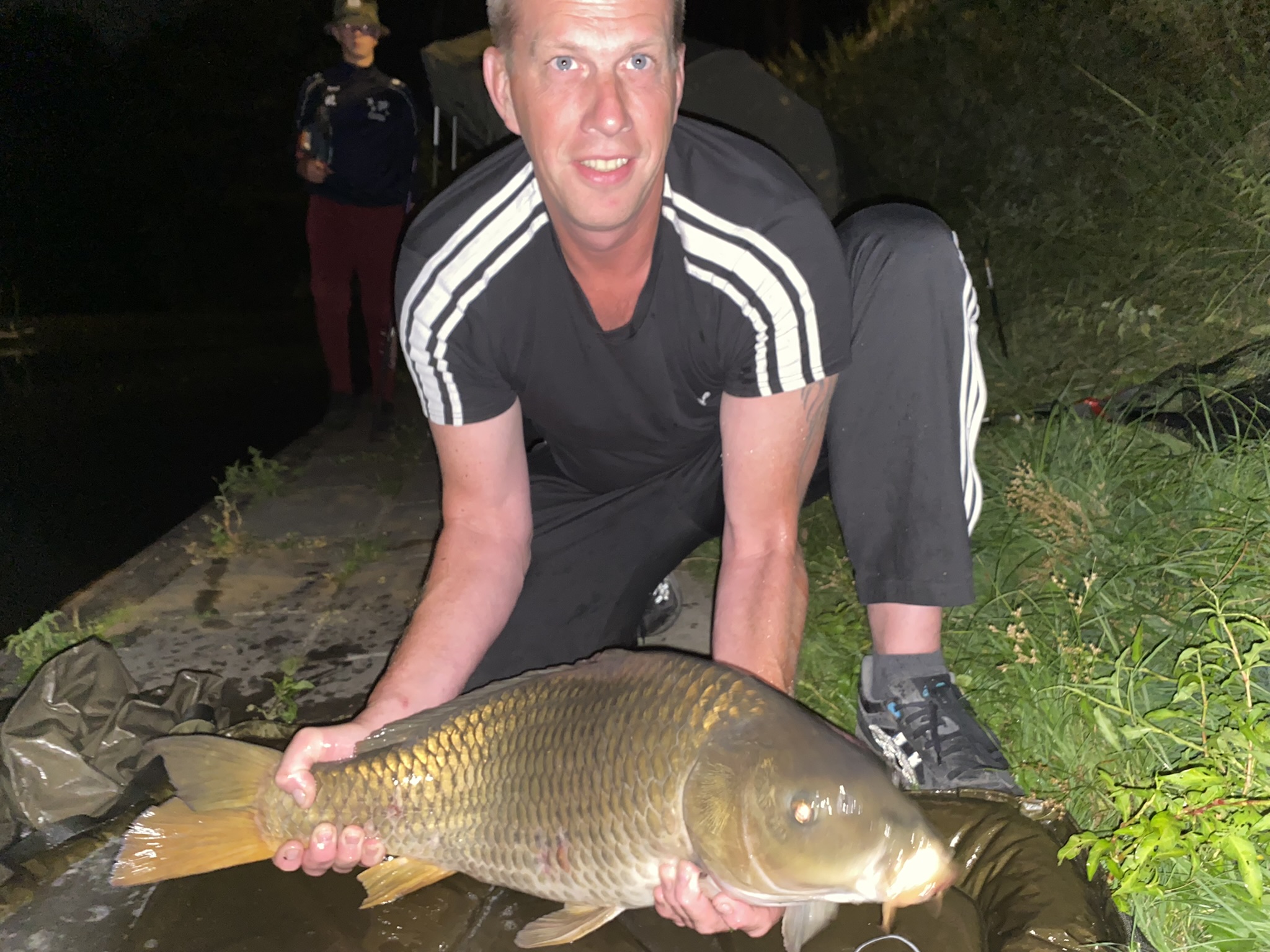 Slechts op één andere stek werd ook karper gemeld. Dat was een stek in de kanovijver waar Joey en zijn vader Remy zaten. Het bijzondere was dat dit koppel geen ervaring had met karpervissen. Ze visten ook met lichte hengels die normaal gesproken voor het karpervissen niet snel worden gekozen. Joey en zijn vader wisten in de loop van de nacht en ochtend 5 karpers te landen en loste in de ochtend nog een karper. Joey wilde niet op de foto om zijn vangsten te tonen zodat deze eer steeds door vader Remy werd waargenomen. Tot aan het eindsignaal bleef het spannend wie de wedstrijd zou gaan winnen. Als Sylvie en Pieter nog 1 vis wisten te landen, zouden zij (wederom) de winnaars zijn. Als dat niet zou lukken zouden Joey en Remy de eerste prijs behalen.