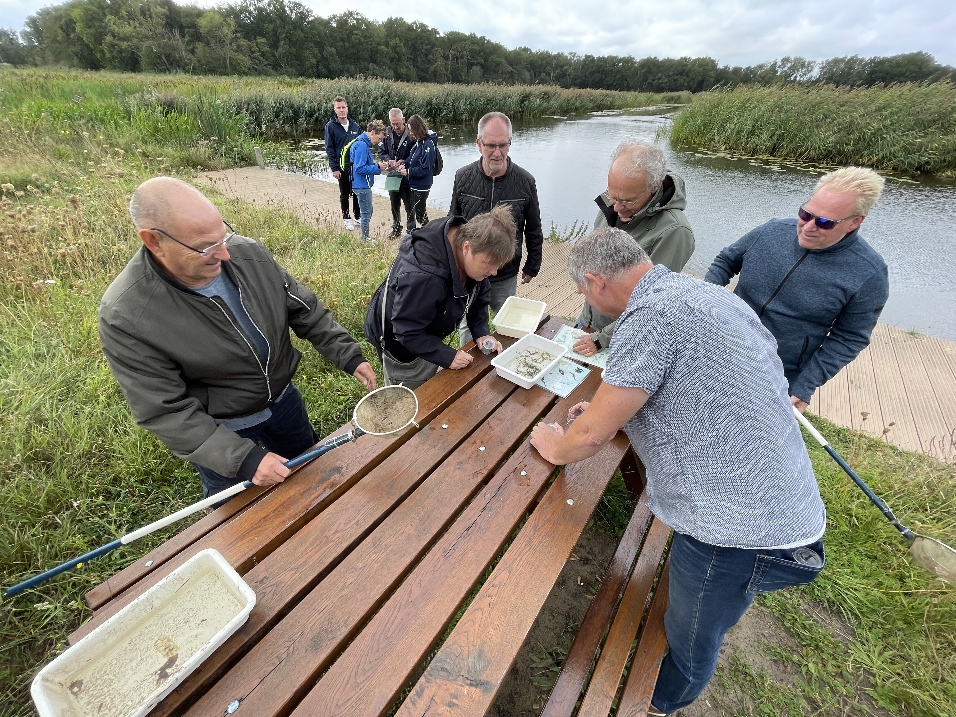 Wim Meijberg van het IVN nam de Samen Vissencoaches mee naar buiten. Met een schepnet, een bakje en zoekkaarten gingen de Samen VISsen-coaches vervolgens vol enthousiasme aan de slag. Een leuke inspiratie voor de coaches om eens met de deelnemers van zorgcentra te doen. Na de lunch was het tijd voor een rondvaart over het Naardermeer.