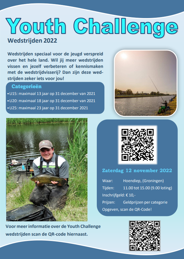 Op zaterdag 12 november wordt de laatste wedstrijd van de youth challenge serie gevist. Niet alleen de wedstrijd kent winnaars, maar ook de eindstand van de competitie wordt opgemaakt.