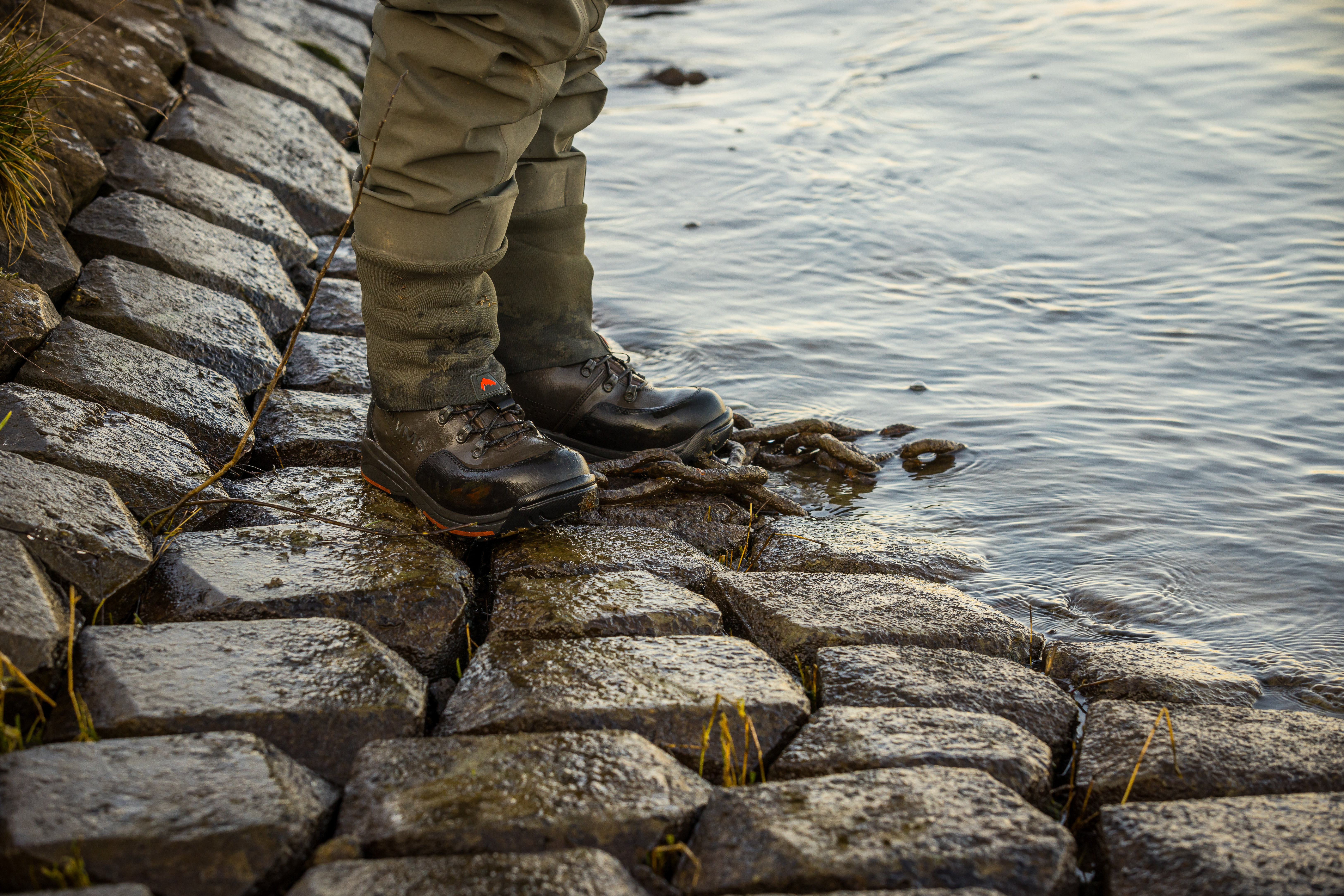 Het is vaak glad rondom de veerstoep door de algengroei op de stenen en betonnen platen. Goed schoeisel is zeker aan te raden als je hier gaat vissen.