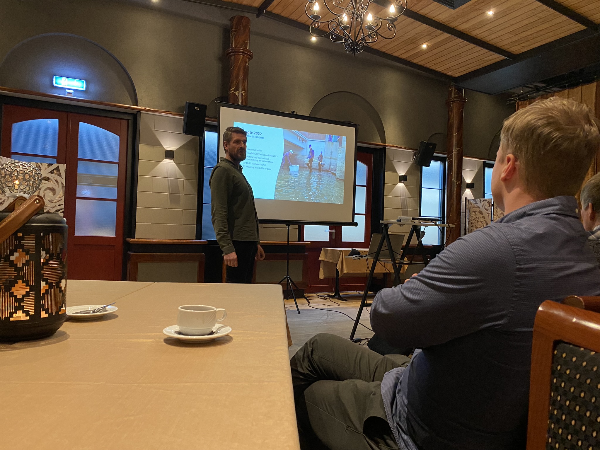 Voordat er aan het stamppotbuffet begonnen werd, waren er 2 presentaties. Vanuit de federatie stonden we stil hoe het afgelopen jaar allemaal verlopen is. In totaal zijn er meer dan 50 (!) reddingsacties uitgevoerd in 2022 door het hele gebeid van de federatie. Ook werd er gekeken naar wat de toekomst ons kan brengen en hoe wij daar op inspelen. Onder andere door de aanschaf van een nieuwe bak voor het vervoeren van de vissen en de aanschaf van goede schepnetten wil de federatie beter voorbereid zijn op calamiteiten.