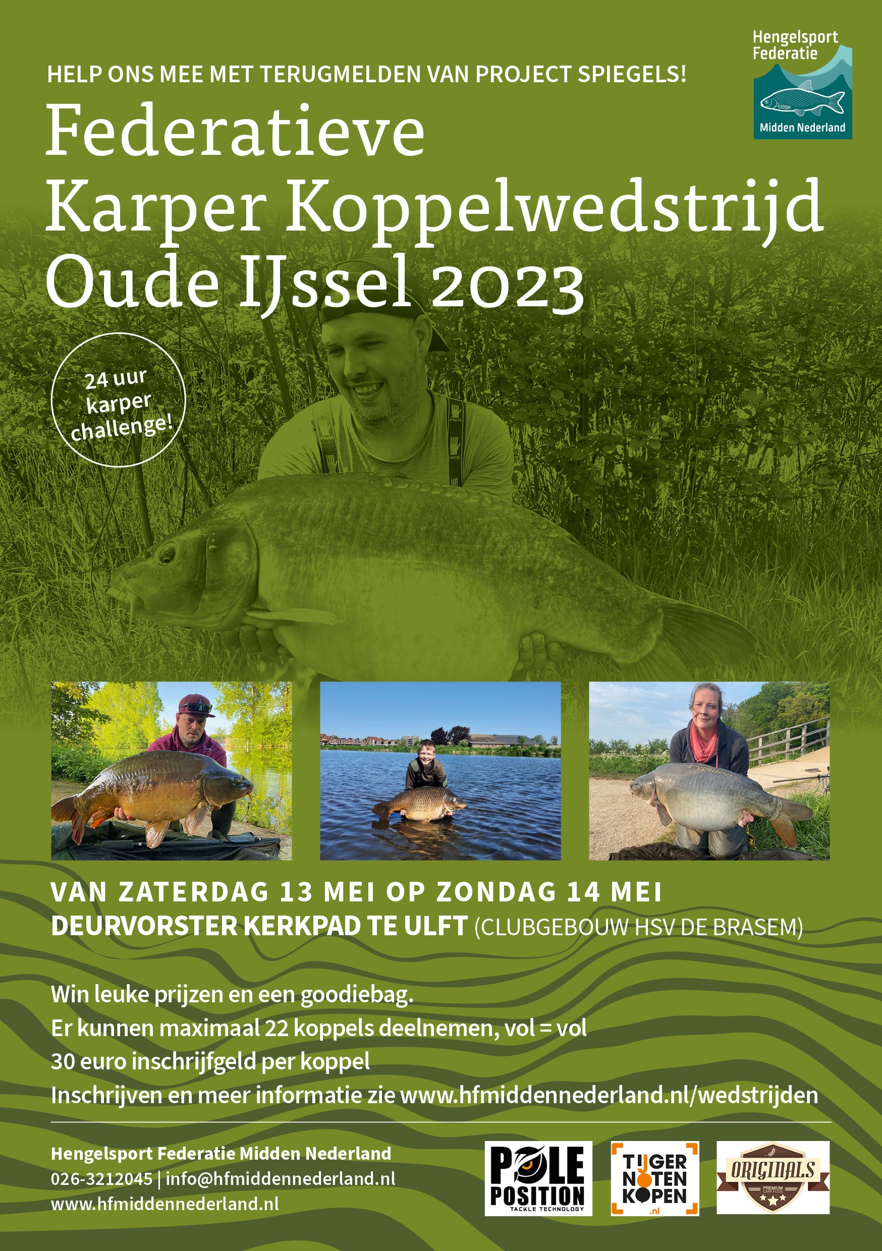 De karpercommissie van de Federatie organiseert op zaterdag 13 mei een 24-uur durende karperwedstrijd aan de Oude IJssel. Inschrijven is vanaf nu mogelijk via de website. Wees er snel bij want het duurt waarschijnlijk niet lang voordat alle plekken gereserveerd zijn!