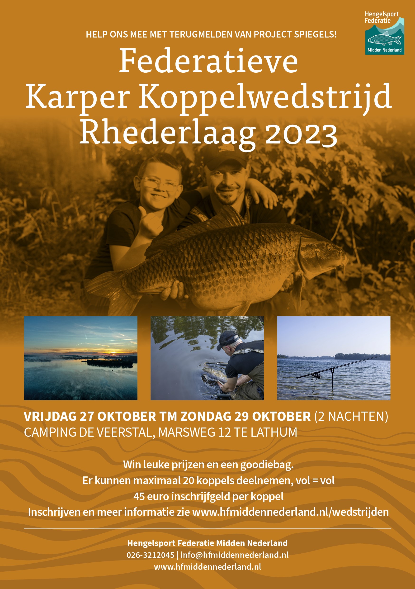 In het weekend van 27 tm 29 oktober organiseert de karpercommissie van Hengelsport Federatie Midden Nederland haar tweede jaarlijkse karper koppelwedstrijd. In het voorjaar van 2023 werd de eerste wedstrijd georganiseerd aan de Oude IJssel. Normaal gesproken zou de tweede wedstrijd plaatsvinden op Slijk Ewijk. Echter, vanwege de zeer beperkte vangsten is dit jaar gekozen om dit water om te ruilen voor een karperwedstrijd van maar liefst twee nachten en op een andere locatie.
