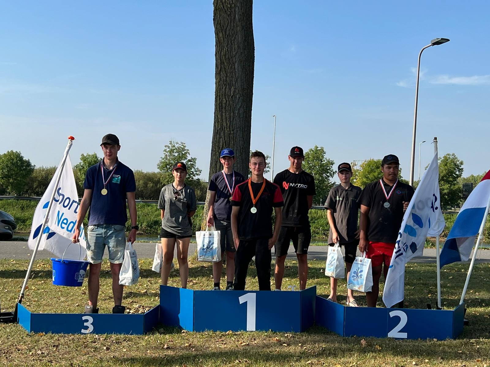 Dan richten we onze pijlen op de U15, hier bleek gaandeweg de wedstrijd serieus vis gevangen te worden, er waren er bij die iedere inworp een beet konden verzilveren. Kenji ging in dit vak als een speer met Appie in zijn kielzog. Guus en Wybe kregen ook regelmatig beet maar vingen een veel kleiner slag vis als Appie en Kenji, maar visten ook een prima uitslag. Kenji kon uiteindelijk 9570 gram vis aanbieden en dat was net een paar gram minder dan de winnaar. Das op dat moment zuur maar met een zilveren medaille op het ONK naar huis gaan is en blijft een geweldig prestatie. Appie komt met 5000 gram helaas net te kort voor het podium. Hier volgt de uitslag van de U15: