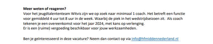 Voor deze functie vragen we ongeveer 8 uur per week van je. Daarbij ben je vooral langs de waterkant te vinden om het team te begeleiden of om nieuwe talenten te scouten. Hier staat een goede vergoeding tegenover. Ben jij geïnteresseerd? Download dan de vacature of scroll naar beneden om deze te bekijken en neem contact op via info@hfmiddennederland.nl. We komen graag met jou in contact!