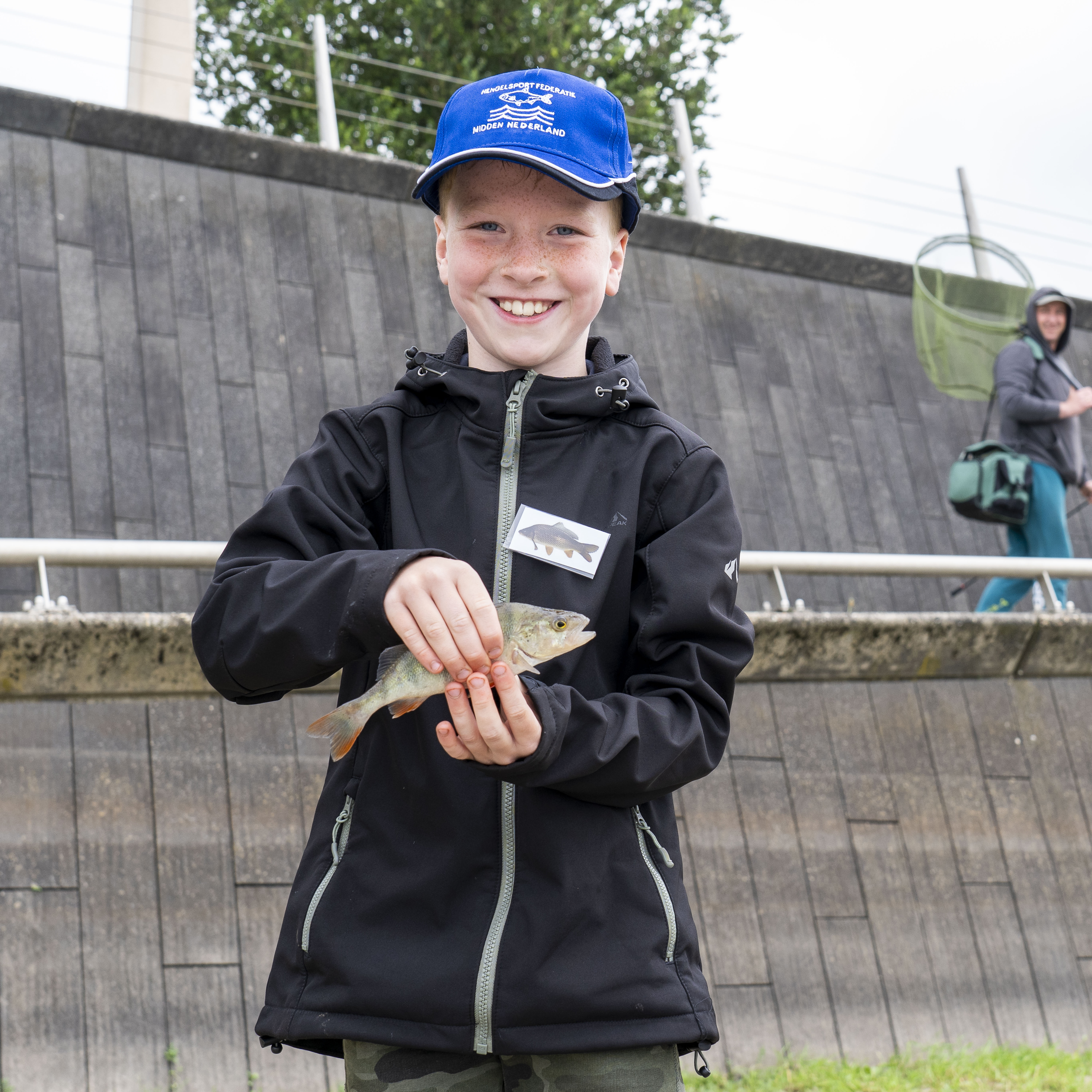 Bij de workshop feedervissen leerde de kinderen hoe het vissen met een heavy feederhengel en wat hier allemaal bij komt kijken. Hier en daar trilde de toppen en werd er een visje gevangen zoals deze leuke baars.