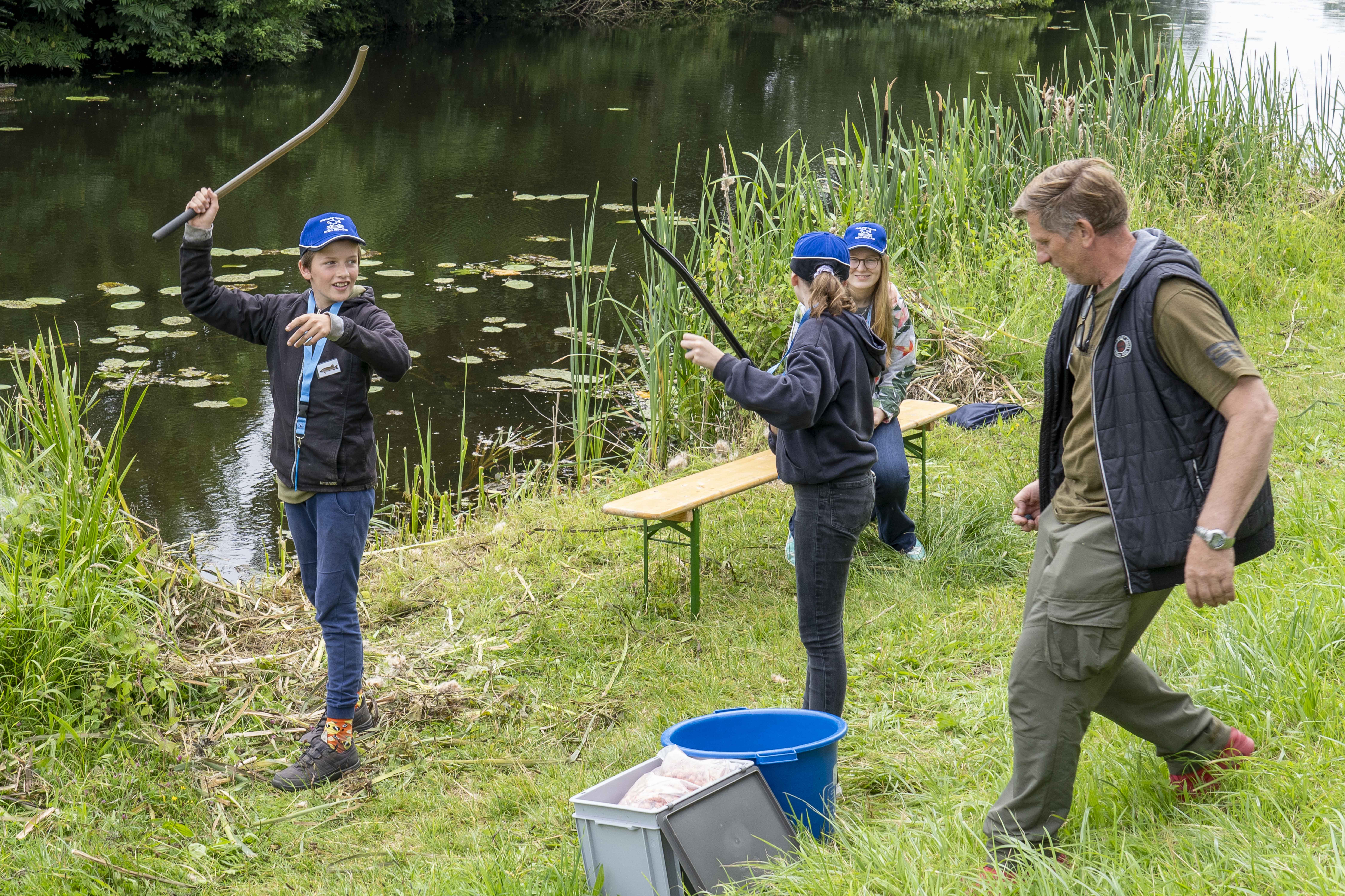 Bij de workshop vaste stok werden de basistechnieken van het vissen met de vaste stok uitgelegd en in praktijk uitgevoerd.