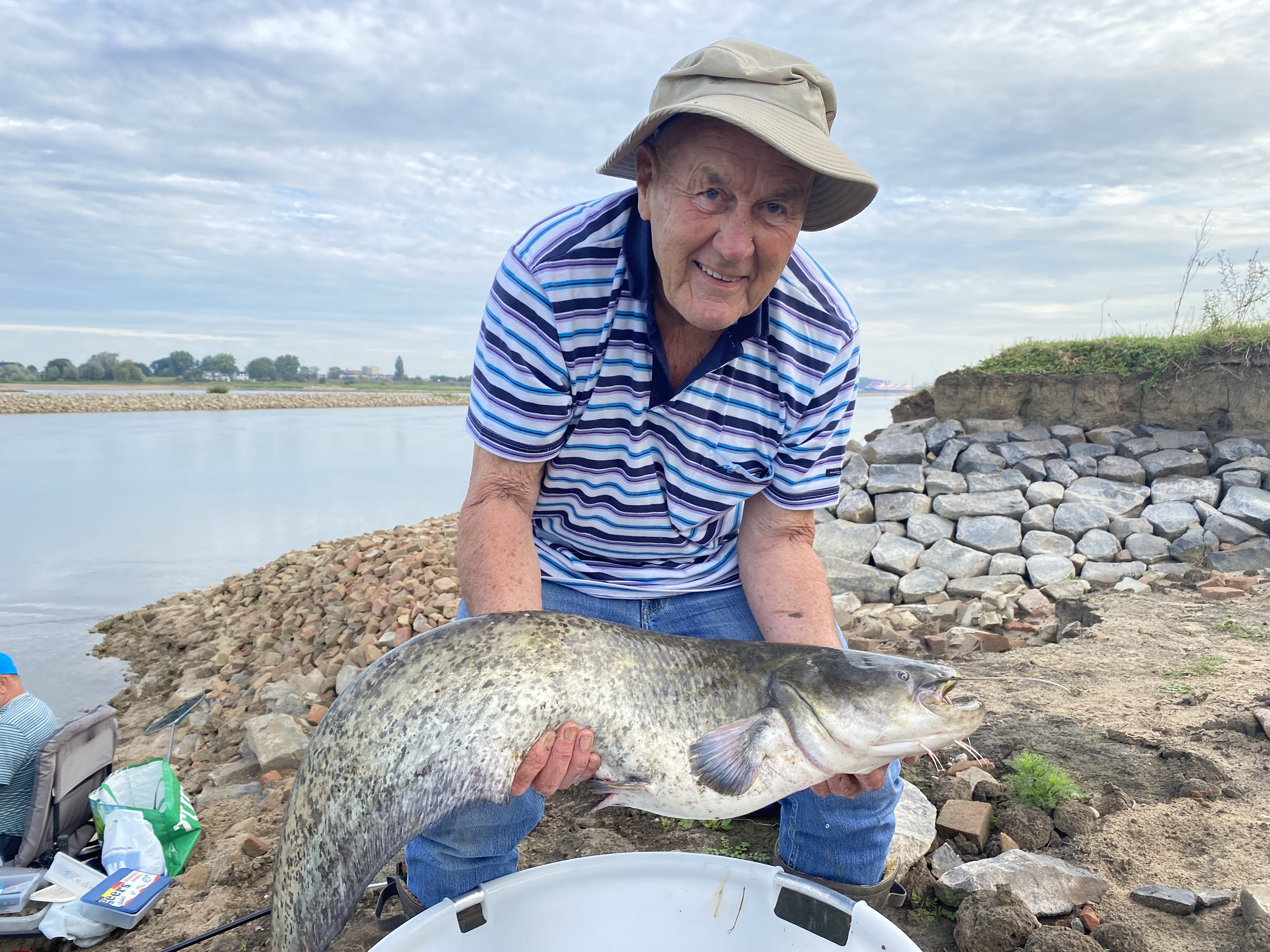 Fauna Hengelsport.In het begin van de wedstrijd kwam de vis maar moeilijk op gang en werd er sporadisch vis gevangen tot een uur nadat de wedstrijd begonnen was de telefoon ging bij de wedstrijdleiding. Er zou een beste meerval zijn gevangen door de visser op de laatste plek van het parcours stroomafwaarts. Op de stek aangekomen bleek het al snel om hele mooie meerval te gaan. De meetlat gaf 1.06 m aan wat betekent dat dit een record is voor de grootste gevangen vis ooit tijdens een langsdam wedstrijd! Adam was de gelukkige die deze vis wist binnen te halen, gefeliciteerd met deze vangst! De laatste twee uur van de wedstrijd kwam de vis gelukkig op gang en werden er meerdere 50+ windes gevangen, grote blankvoorns, brasems en een aantal blauwneuzen en een barbeel.