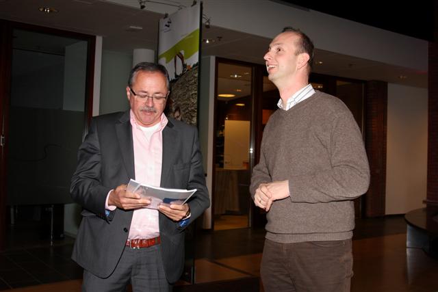 Heemraad Matthieu Gremmen krijgt het visplan overhandigd van VBC voorzitter Jos van Maanen.