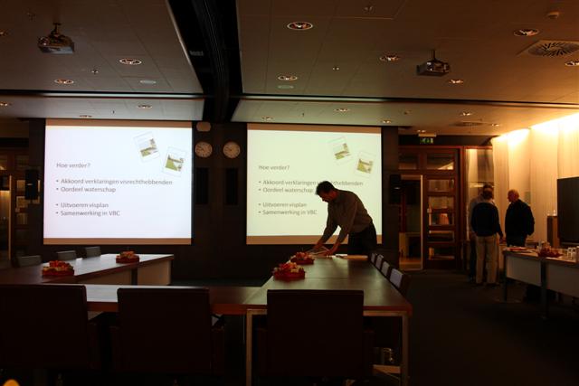 Na de overhandiging sprak de heemraad nog tot alle visrechthebbenden over het geleverde werk en de verwachting vanuit het waterschap. Volgens hem ligt er een goed product en zullen er geen grote problemen voordoen bij de toetsing van het plan.