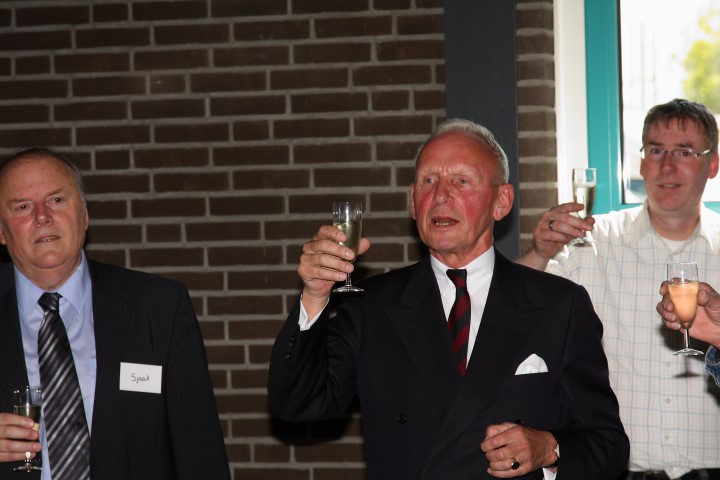 Menno Knip heft en glas en verklaard daarmee het kantoor geopend.