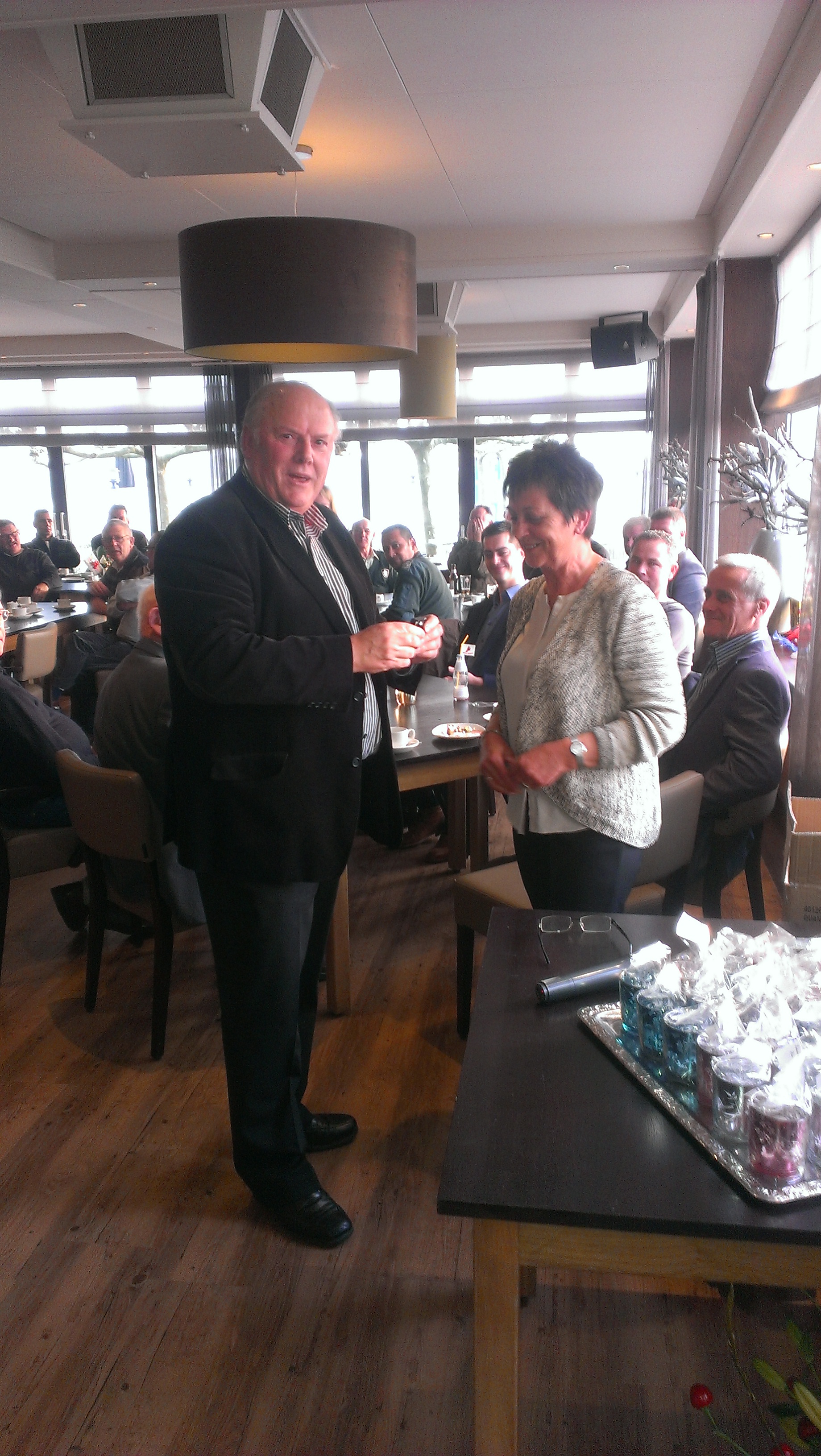 De federatie heeft in het bijzijn van vrienden en collega's van Ans zaterdag feestelijk haar carrière afgesloten. Ans heeft jarenlang nauw samengewerkt met verenigingen en een grote groep vrijwilligers. In totaal waren er 86 mensen aanwezig op de receptie hetgeen genoeg zegt over hoe Ans lag binnen de verenigingen. Uit alle windstreken waren mensen vertegenwoordigd en ze vonden het allemaal jammer dat Ans stopt.