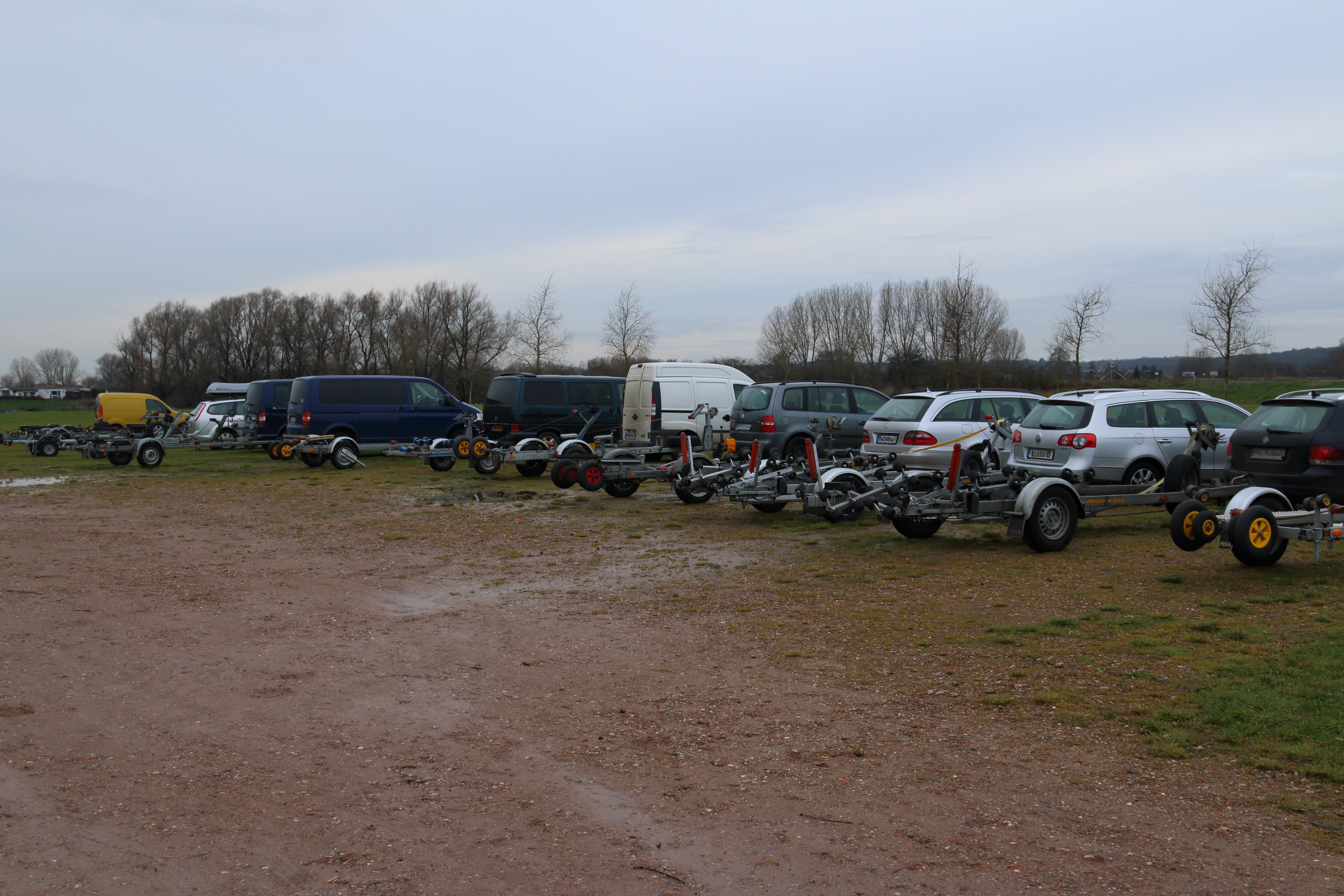 Dat het veel vissers aantrok was duidelijk bij aankomst op de parkeerplaats, deze stond helemaal vol met auto's met boottrailers (20 stuks!). Het merendeel van de auto's bestond uit Duitsers. Rhederlaag ligt vlakbij Duitsland en heeft een grote aantrekkingskracht vanuit die hoek.