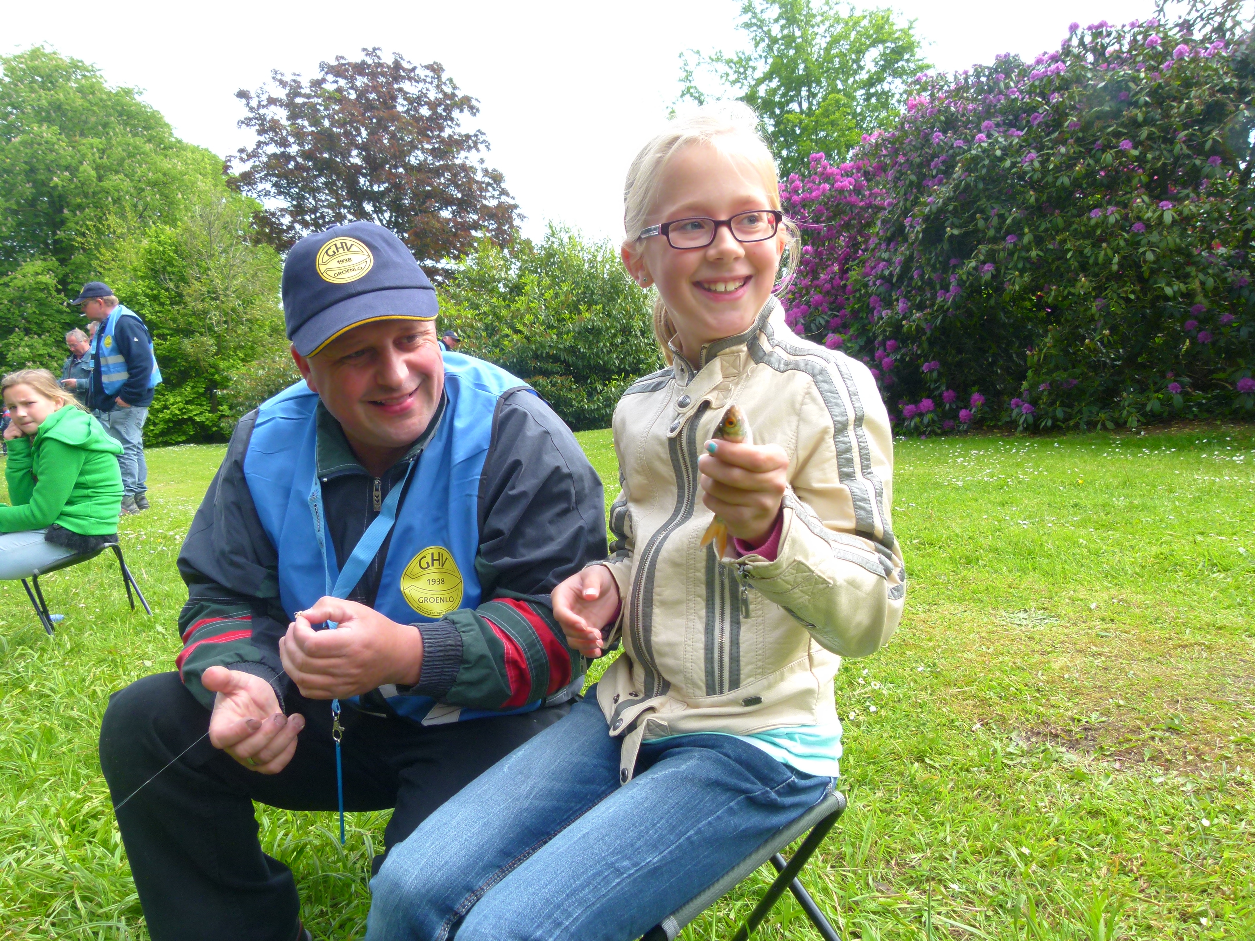 De klas werd door een grote groep vrijwilligers van de GHV welkom geheten langs de waterkant. Voor ieder kind stond al een stoeltje en een opgetuigde hengel en aas klaar. Hierdoor konden de kinderen snel beginnen met vissen. De vangsten vielen niet tegen!