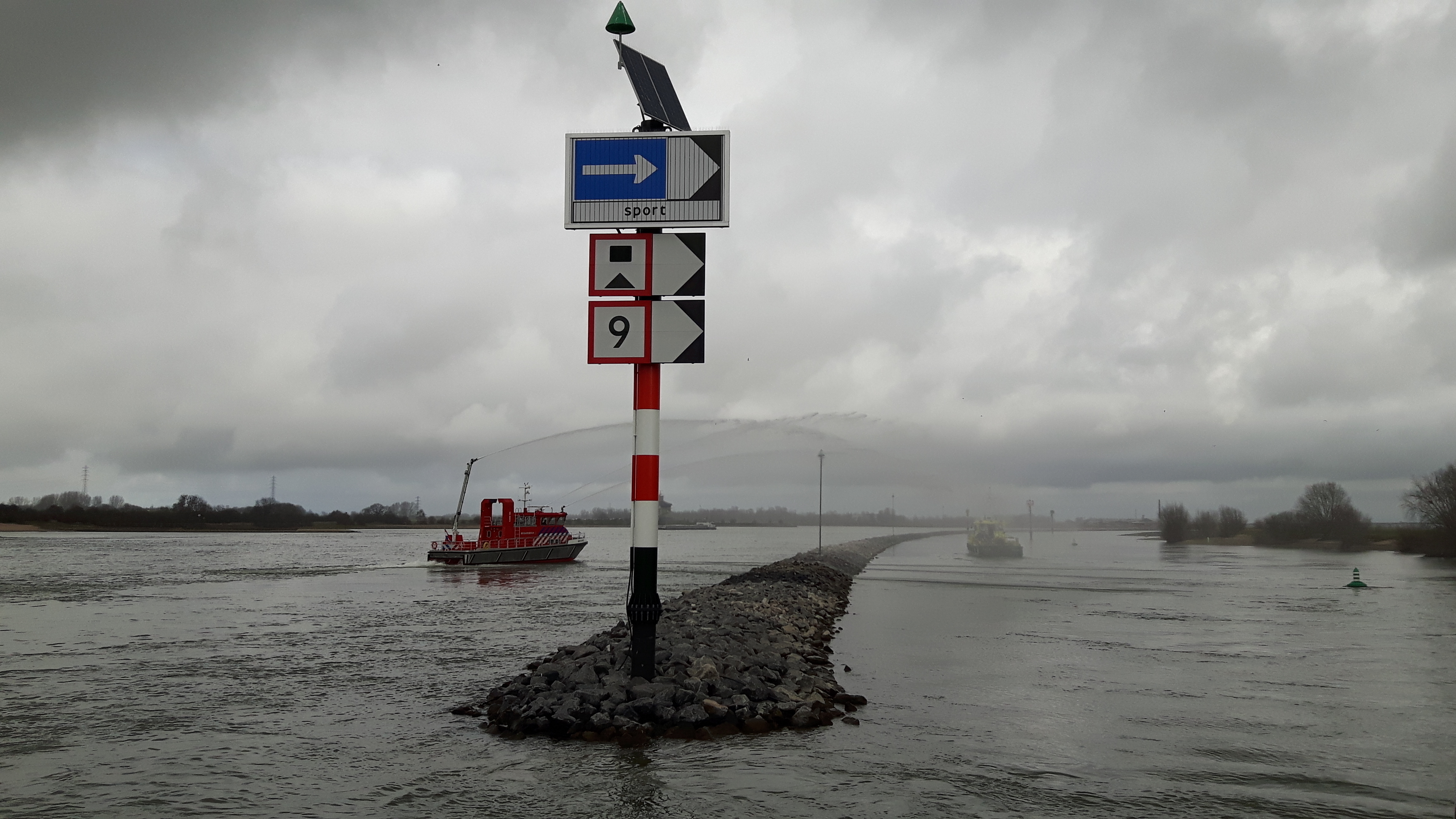 Opening langsdam met boot van de brandweer en rijkswaterstaat