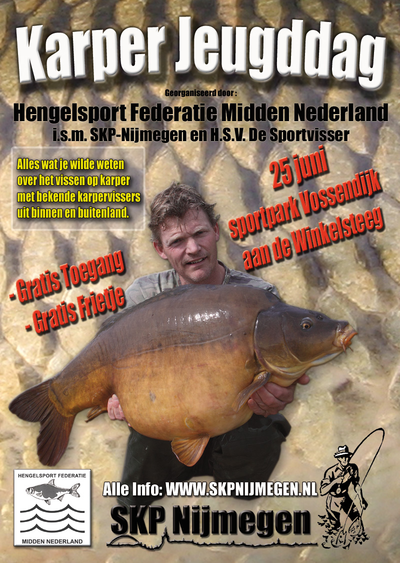 Hengelsport Federatie Midden Nederland organiseert in samenwerking met SKP-Nijmegen en hengelsportvereniging De Sportvisser een grandioze karperdag speciaal gericht op de jeugd.